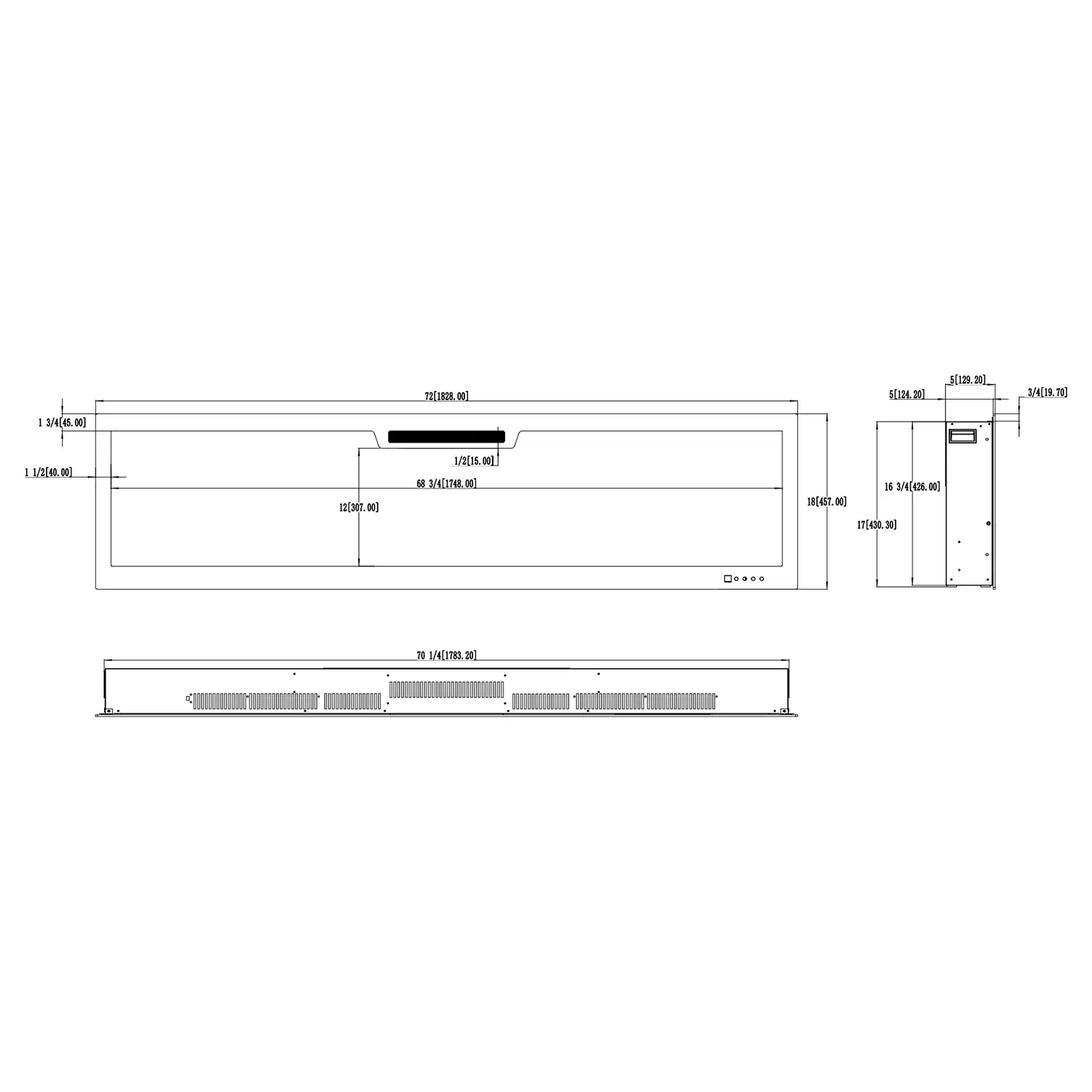 Aflamo Elite 182,8 cm (72\") elkamin erbjuder en elegant och modern design med en imponerande lågeffekt. Med 10 lågfärger, 4 ljusstyrkenivåer och upp till 1,5 kW värme ger den både värme och atmosfär. Styrd via fjärrkontroll eller app, den kan väggmonteras eller fällas in för en sömlös passform i ditt hem.