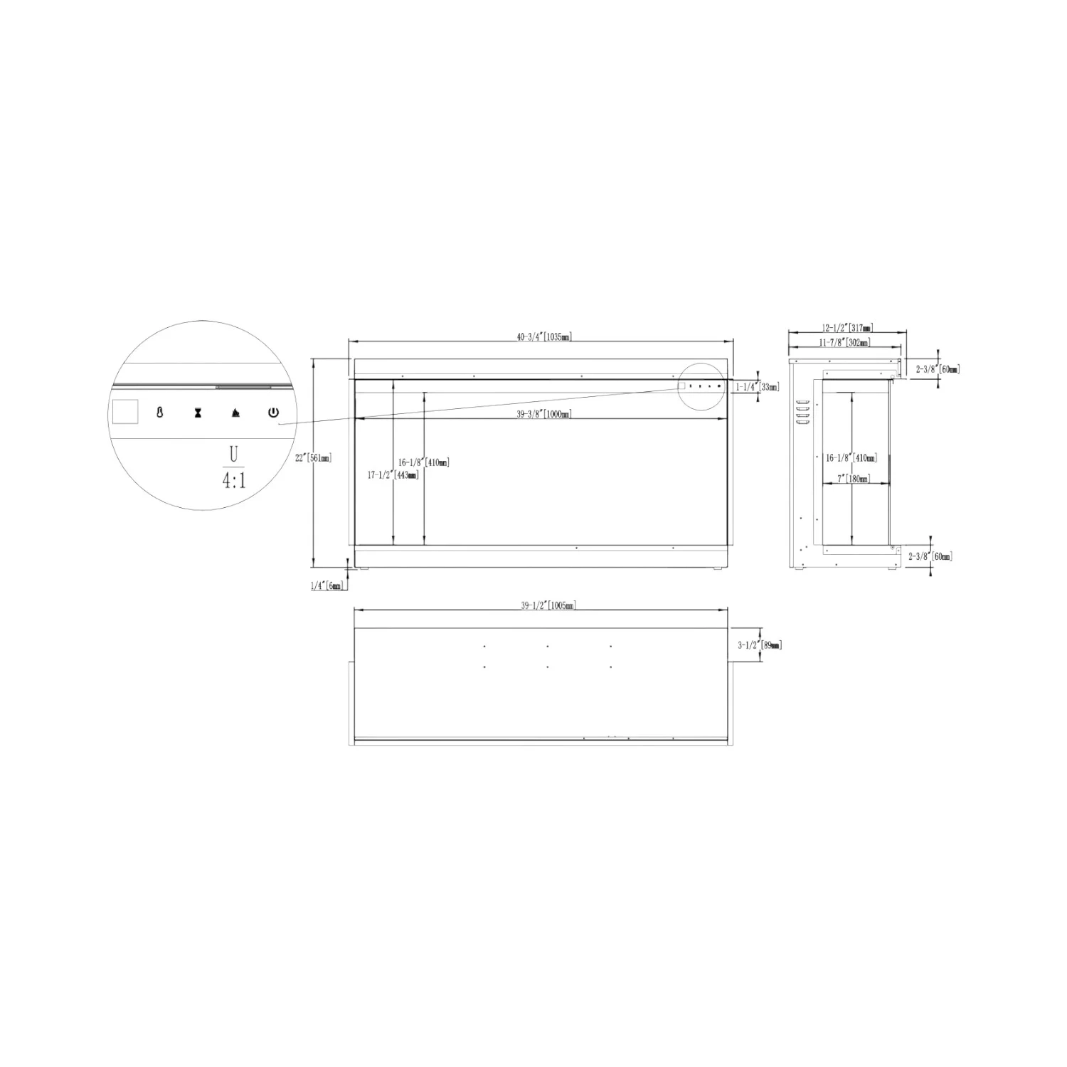 3-sidig inbyggd elkamin