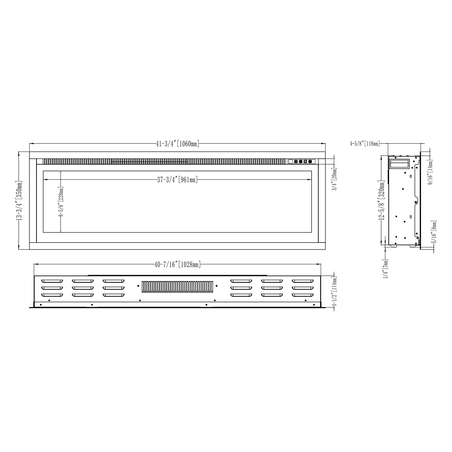1-sidig inbyggd elkamin