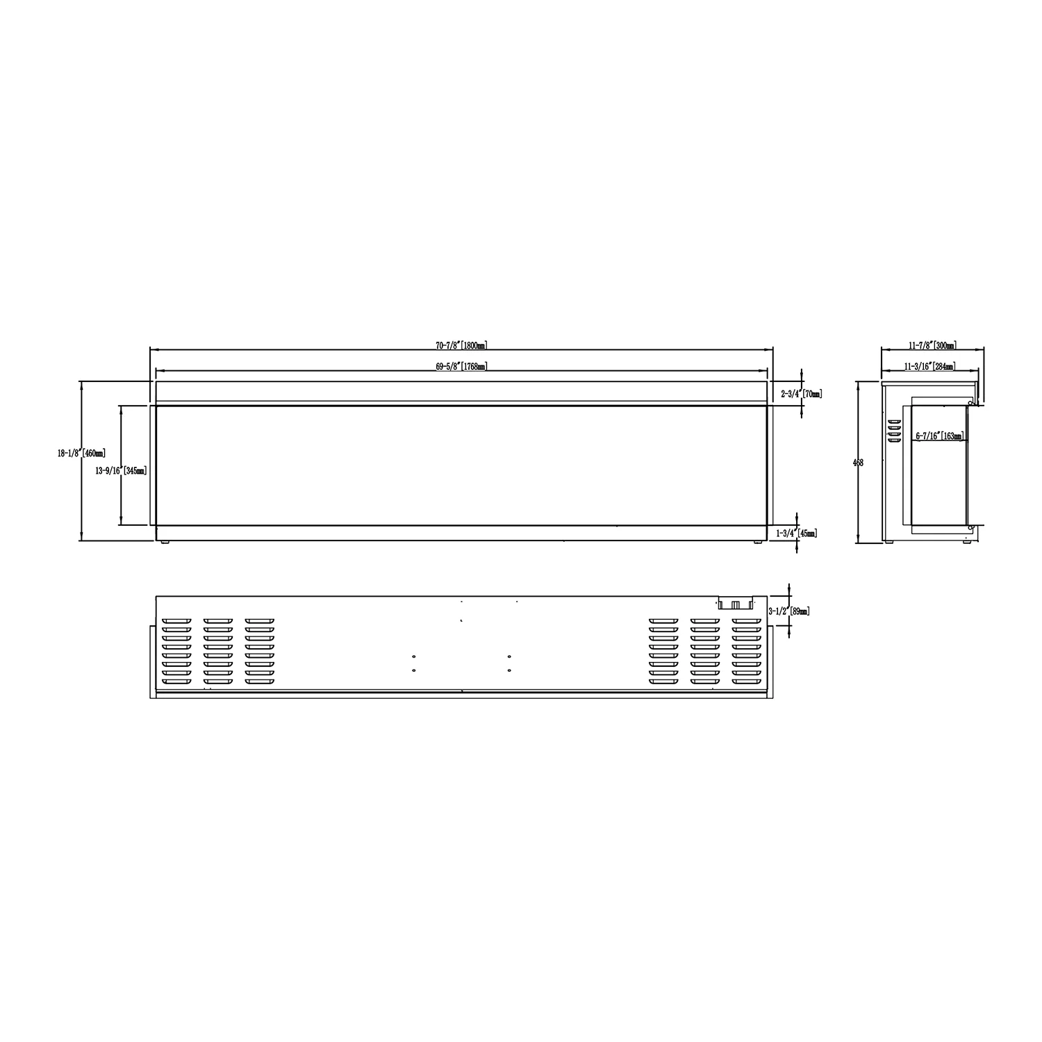 3-sidig inbyggd elkamin